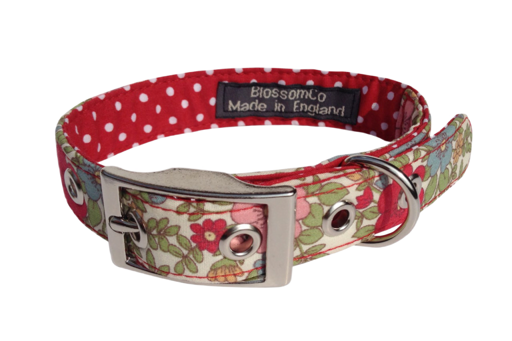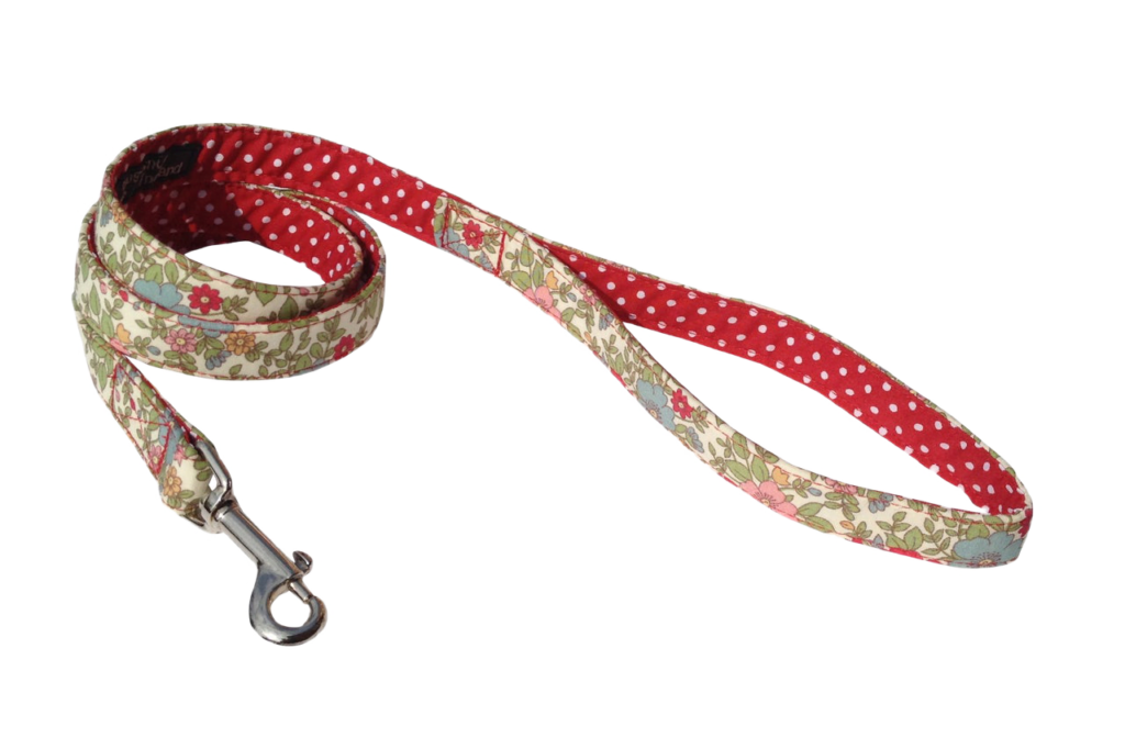 The Alice floral dog lead design has a very pretty pattern of delicate green, red and pink flowers.